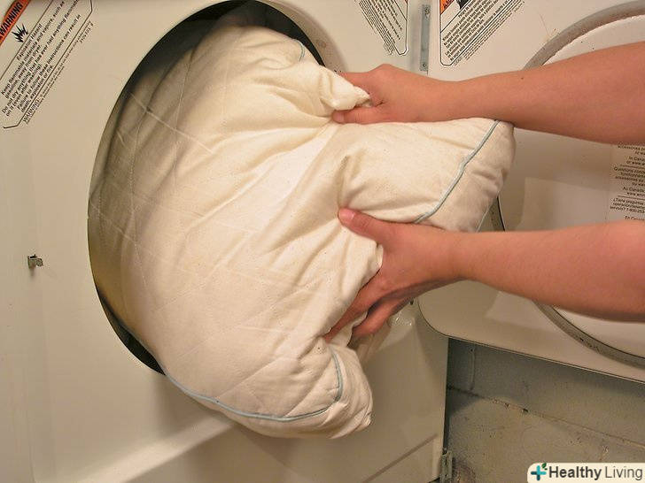 Якщо у вас є сушильна машина, завантажте в неї подушки, поставте на делікатний режим і протягом сушіння зупиняйте машину кілька разів, щоб збити подушки, потім продовжуйте сушити.