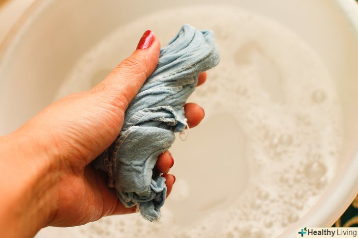Змочіть тканину без ворсу в миючому розчині і відіжміть всю зайву воду.