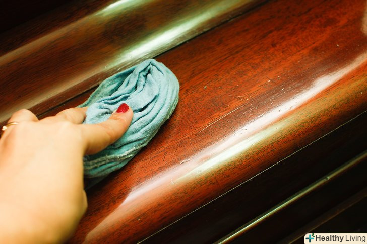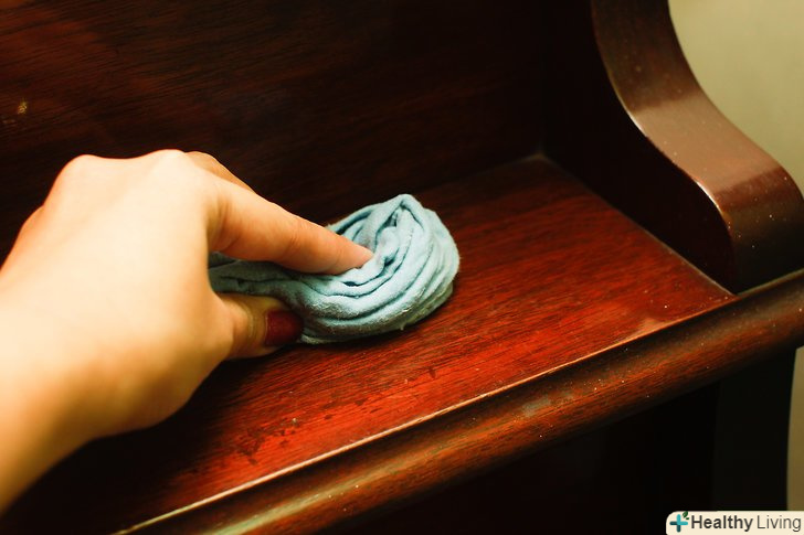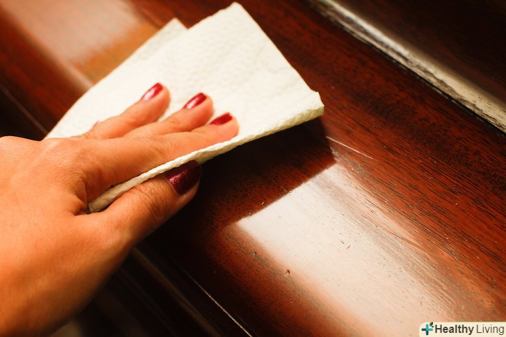 Протріть дерево, щоб видалити всі жири, бруд і віск, масло або старий поліроль для меблів. .- Працюйте на невеликій ділянці меблів і часто промивайте ганчірку.