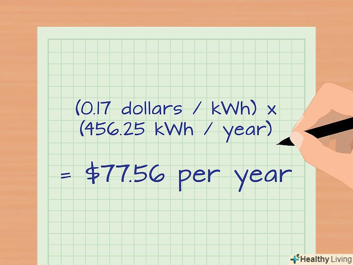 - Якщо на етикетці електроприладу немає значення потужності, почитайте інструкцію з експлуатації цього приладу. Більш того, на деяких ярликах значення потужності в кіловат-годинах вже вказано і позначається як «kWh/year» (кВт∙год на рік), «kWh/annum» (кВт∙год щорічно) або «kWh/60minutes» (кВт∙год за 60 хвилин). Такі обчислення засновані на середніх показниках і є більш точними, ніж описані в цій статті. [6] [7] [8]