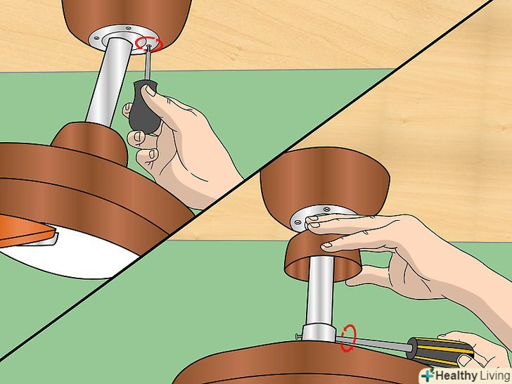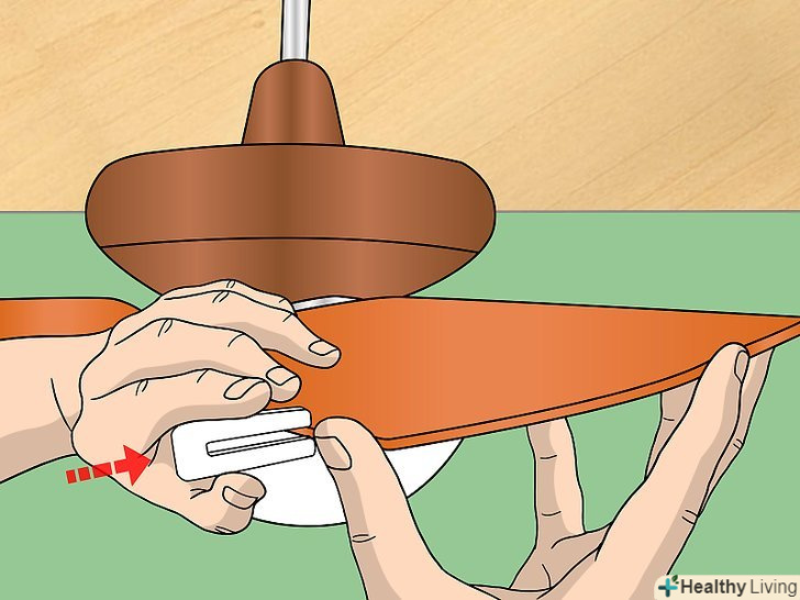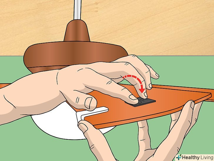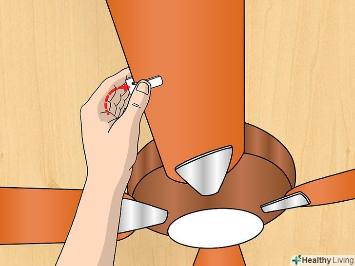 Перевірте і переконайтеся, що всі лопаті добре прикручені. дивіться на маховик вентилятора, який частково прикручений до стелі, і знайдіть місце, де лопаті прикручені до механізму. Викруткою затягніть всі болти, які здаються вам розхитаними.- Або на цьому етапі ви можете відкрутити всі лопаті і очистити їх ще раз. Пил може збиратися в проміжках між лопатями і маховиком, викликаючи коливання через деякий час. Якщо який-небудь з них хитається, то, перш ніж закрутити його, відкрутіть їх, зніміть і очистіть лопаті.