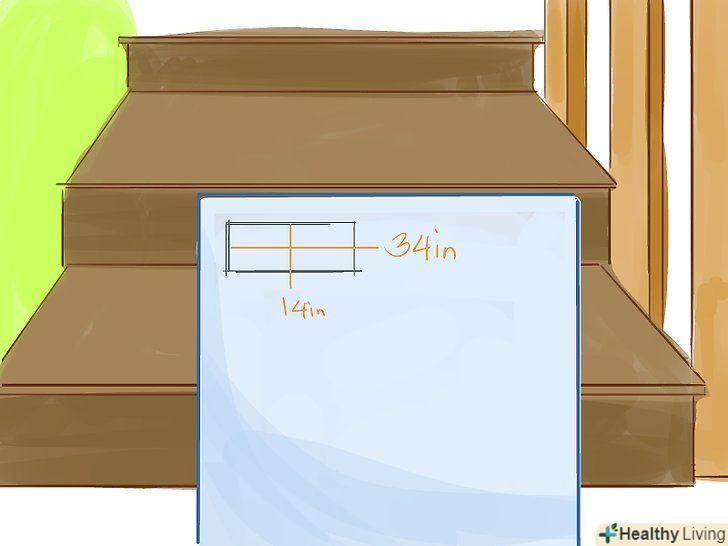 Виміряйте 1 ступінь сходів, зокрема, ту її горизонтальну частину, на яку наступають, від одного боку до іншого, від стіни до поручнів.- Округліть величину вимірювань до найближчих метрів і запишіть. Якщо думаєте постелити тільки килимову доріжку, виміряйте ширину площі, яку ви плануєте накрити.
