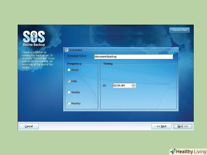 - Налаштуйте розклад резервного копіювання важливих файлів. Ви можете задати будь-яку регулярність створення резервних копій (в залежності від того, як часто ви використовуєте комп'ютер і редагуєте файли). Не забудьте включити комп'ютер в призначений час.