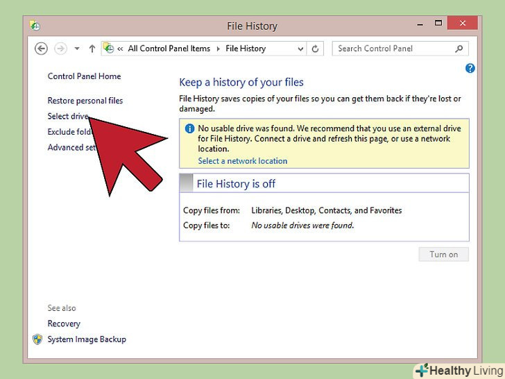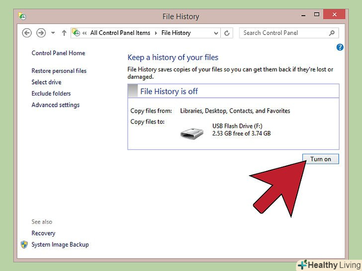 Підключіть пристрій до комп'ютера (через USB кабель або іншим способом).відкриється вікно з повідомленням про підключення нового пристрою. У цьому вікні виберіть опцію для створення резервної копії даних.- Якщо вікно не відкрилося автоматично, відкрийте його вручну. Для цього знайдіть опцію "Історія файлів" через пошук в меню "Пуск" або в панелі управління.