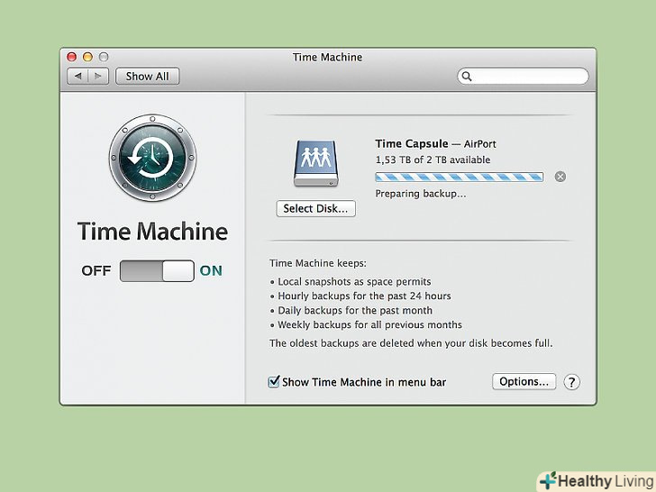 Змініть налаштування, натиснувши "Налаштування системи" - "Time Machine» - "налаштування" (в нижньому правому куті), щоб вибрати елементи, що не включаються в резервну копію, налаштувати повідомлення і задати параметри витрачання енергії акумулятора.