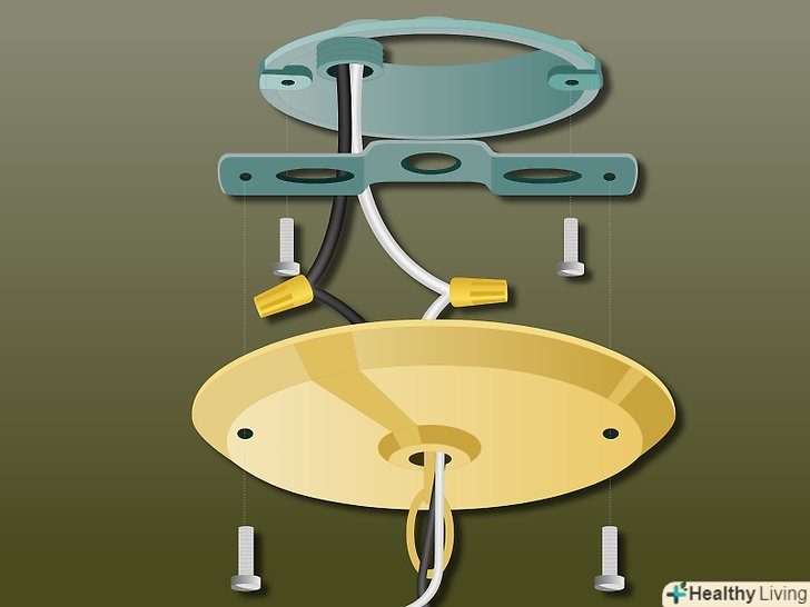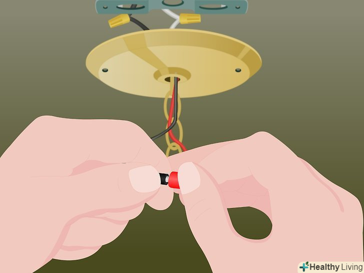 - З'єднайте дроти в монтажній коробці люстри. З'єднайте всі заземлюючі дроти так, як описано вище, якщо це ще не зроблено. У монтажній коробці люстри будуть два 3-жильних кабелю. Один 3-жильний кабель йде від першого вимикача і білий ізольований провід там нульовий, інший трижильний кабель приходить з другого вимикача, і білий провід буде тим, що називається " гілкою вимикача»