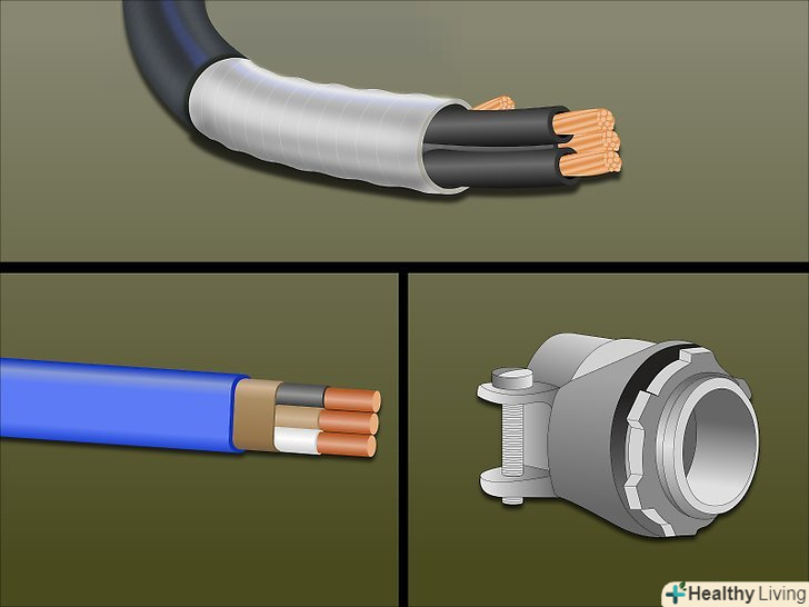 Виберіть правильний тип кабелю. енергопостачання або силовий кабель повинен бути з "2 проводів" (або провідників) плюс провід заземлення. Зазвичай типи кабелів з даними характеристиками наступні:- NM (часто званий «Ромекс») і uF тип кабелю (у обох Пластикова обплетення навколо 2 або більше ізольованих проводів – один білий, один чорний і інші – і один неізольований провід). NM використовується в закритих приміщеннях, UM використовується поза приміщеннями, якщо піддається сонячній радіації або закопується в землю.