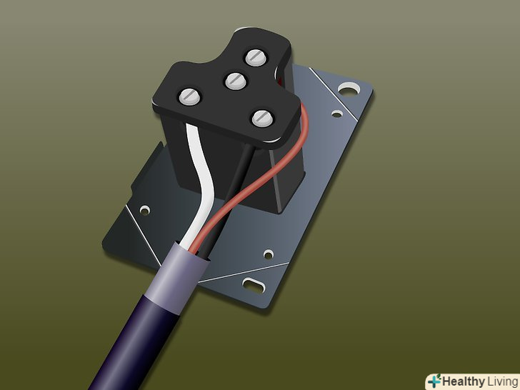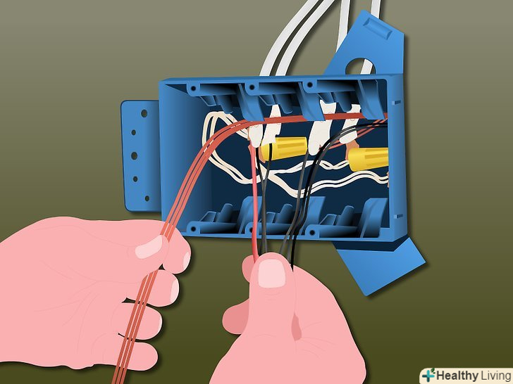 Приєднайте трижильний кабель в монтажній коробці другого вимикача до вимикача. З'єднайте всі заземлюючі дроти так, як було описано вище, якщо це ще не зроблено. Приєднайте чорний ізольований дріт до загального або паралельного гвинта терміналу вимикача (ще раз, загальний гвинт терміналу відрізняється за кольором від інших гвинтів у вимикачі).- Приєднайте червоний ізольований провід до одного з двох гвинтів (до якого саме - не має значення).