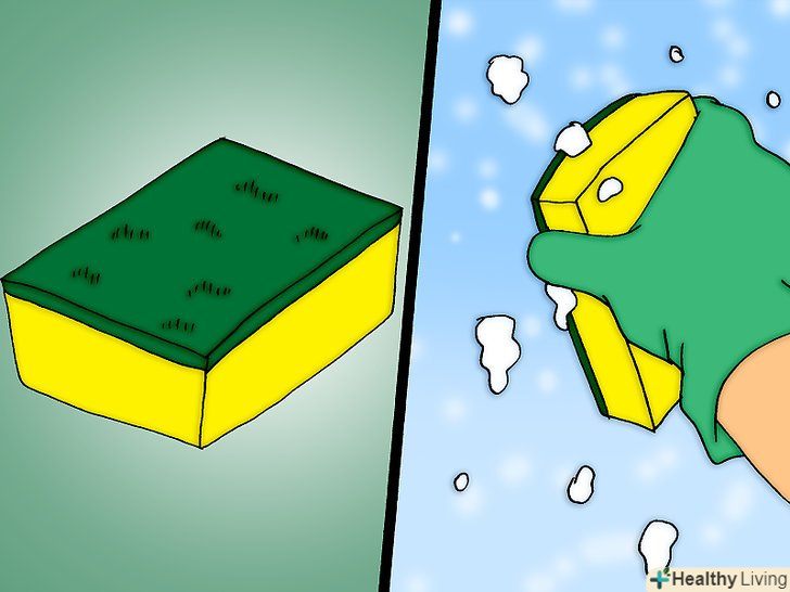 Використовуючи жорстку сторону губки, відітріть розлучення.