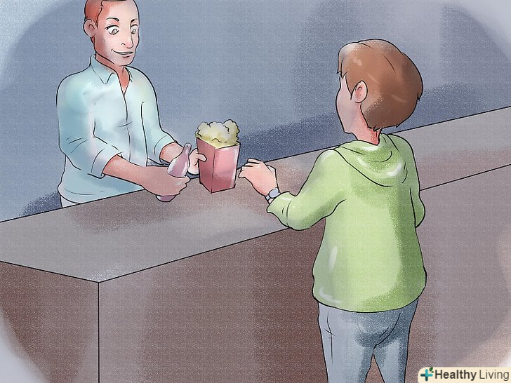 Купуйте снеки, але будьте готові заплатити більше, ніж зазвичай.якщо ви привели з собою дітей, обмежте, скільки снеків або солодощів їм можна купити. Не треба купувати занадто багато: сидіння в кінотеатрах зазвичай невеликі, і ви навряд чи захочете відволікатися від того, що відбувається на екрані, намагаючись не просипати своє величезне відро попкорну.