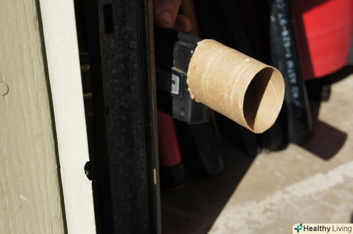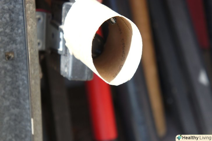 Використовуйте внутрішню трубку порожнього рулону туалетного паперу, святкової обгорткового паперу, поліетиленової плівки або будь-яку картонну трубу, що має відповідний розмір в діаметрі і досить гнучку, щоб можна було зігнути її в формі електричного очного датчика для дверей гаража. можливо, вам доведеться поекспериментувати з декількома розмірами трубок, поки не знайдете саме ту, яка буде щільно закріплена на датчику і в разі чого, не впаде.