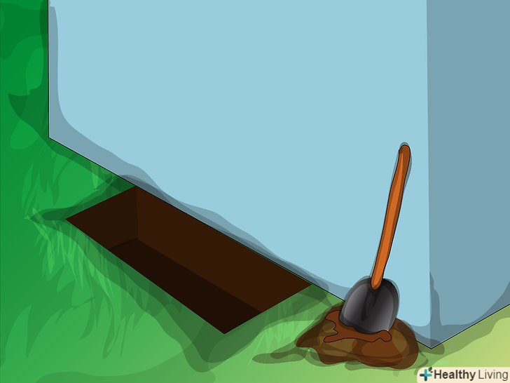 Вирийте яму.- Верхній край короба повинен виступати приблизно на 15 см над землею, а яму потрібно зробити на 10 см глибше, щоб насипати туди шар гравію. Використовуйте короб, щоб контролювати глибину ями.