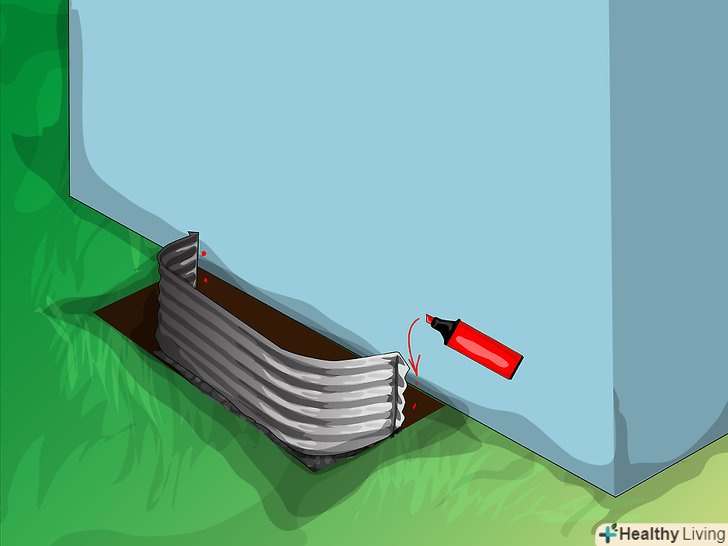 Візьміть короб приямка і поставте його на землю біля вікна, щоб позначити периметр ями, яку вам потрібно викопати. відзначте лопатою прямокутну область навколо короба на відстані близько 15 см від його зовнішніх стінок.