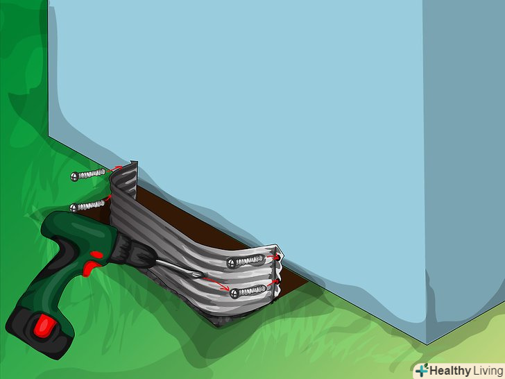 Відзначте на стіні точки, де будуть кріпитися анкерні болти.- Як правило, короби приямків кріпляться до фундаменту анкерними болтами. Це найбільш надійний метод кріплення, але існують і інші способи. Зверніться до інструкції по установці, щоб правильно закріпити ваш короб.
