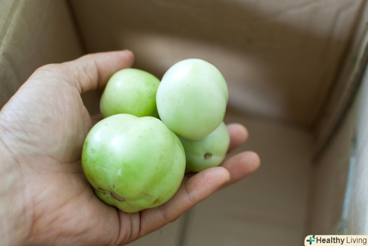 Регулярно збирайте урожай. для кожного способу, потрібно щоб помідори були зібрані вчасно. По можливості знімайте з гілок зелені помідори, які у суцвіття почали трохи червоніти і вже не такі тверді, як зовсім зелені помідори. [1] Якщо зірвете їх раніше, коли плоди ще недозріли, то вони просто не встигнуть. Зелені томати теж можна готувати.- Якщо не впевнені, чи готові помідори для збору, то розріжте плід навпіл, якщо всередині жовтувате липке желе, то помідори можна збирати. [2] з очевидних причин розрізаний помідор не встигне, але дозволить вам заглянути всередину зеленого плоду, зірваного з гілки.