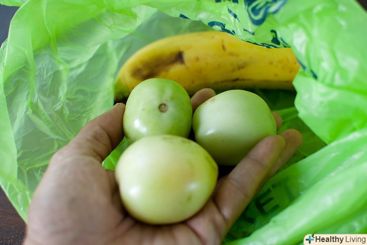 Відкрийте пакет і покладіть в нього стиглий банан і помідори (скільки увійде).