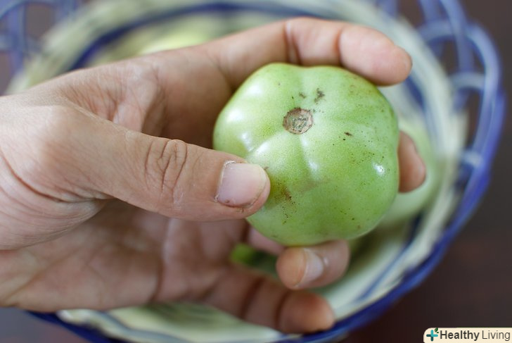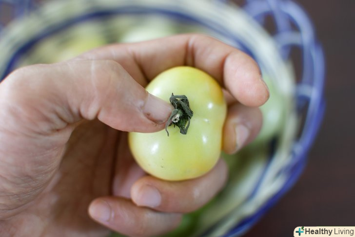 Перед зберіганням, зніміть помідори з куща, Видаліть всі гілочки, листочки, стебла і т. д., які можуть подряпати або пошкодити плоди під час дозрівання. Якщо помідори брудні, то спочатку акуратно вимийте їх і висушіть на повітрі.- Скористайтеся однією із запропонованих нижче технік по зберіганню і дозріванню помідорів, знятих з куща.
