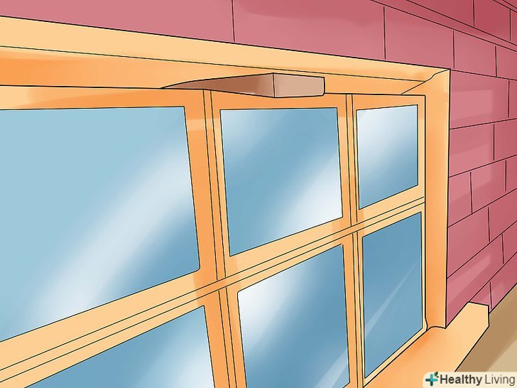 Використовуйте замазку або дрантя, щоб загерметизувати верхню частину вікна. якщо зазори у верхній частині вікна закладати розчином, він може створити тиск в процесі висихання, яке може стиснути скло і стати причиною появи тріщин. Дайте розчину висохнути повних двадцять годин, потім заповніть всі пропуски 100% силіконовим герметиком. [11]
