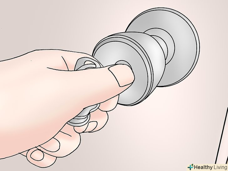 Натисніть на механізм блокування, який являє собою круглий об'єкт в центрі дверної ручки.