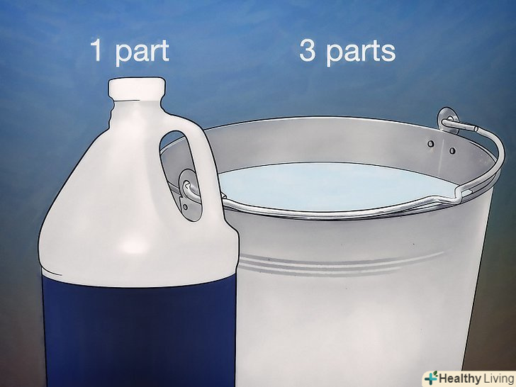 Приготуйте миючий розчин. щоб як слід помити москітну сітку, вам знадобиться відро водного розчину нашатирного спирту. Ця суміш дозволить розщепити і змити з сітки бруд, пил та інші сторонні речовини. Щоб приступити до миття сітки, залишилося змішати нашатирний спирт і воду. [6] [7]- Розведіть одну частину нашатирного спирту в трьох частинах води.