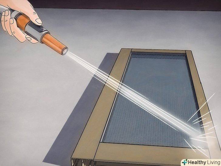 Сполосніть сітку. після того як ви переконаєтеся, що сітка чиста, її можна сполоснути водою. Акуратно обдайте сітку з садового шланга, щоб видалити з неї залишки чистячого розчину і бруду. Не забудьте як слід сполоснути сітку, перш ніж висушити її і встановити на місце. [13] [14] [15]- Не пускайте воду під великим напором.