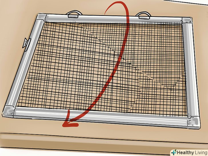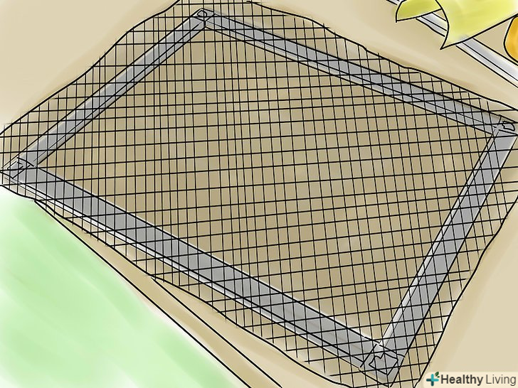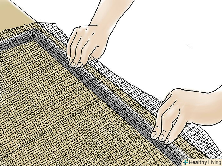 Накладіть сітку на рамку (сітка повинна бути більше рамки на 2,5-7,5 см по всіх чотирьох сторонах). при роботі з москітною сіткою великих розмірів можна тимчасово закріпити її ділянки невеликими шматочками гумового шнура, поки ви рівномірно не розподілите всю сітку.