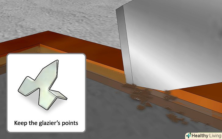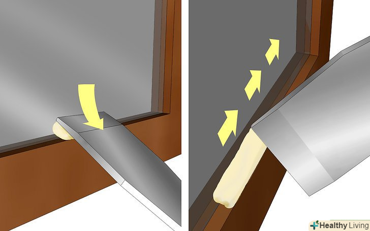 Видаліть залишилася стару замазку шпателем. можливо, вам доведеться нагріти її феном, щоб вона добре знімалася. Так само видаліть з рами всі старі віконні Штифти, якщо вони відрізняються за розміром від нових – не викидайте їх. Щоб очистити поверхню, використовуйте металеву щітку.- Додатковий крок: ретельно вичистіть оліфу на поверхнях, які будуть схильні до замазки. Це продовжить термін служби вашої замазки, але щоб вона висохла, знадобиться день або більше, так що плануйте свій час відповідно.