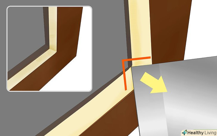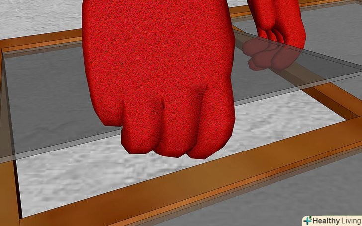 Вставте скло в раму.- Тримайте скло під невеликим кутом зверху вниз, рама повинна бути щільно прикріплена до плоскої поверхні внутрішньою частиною до вас.