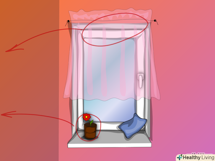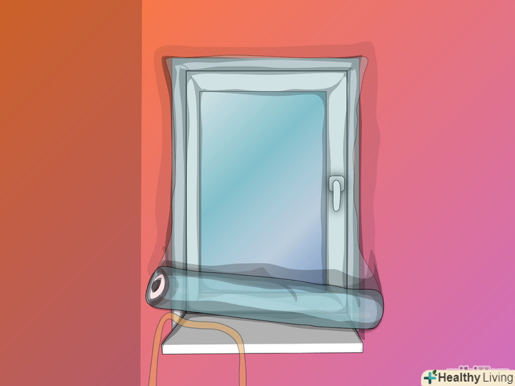Видаліть залишки захисної стрічки зі скотча з боків і знизу, притримуючи рулон термоусадочної плівки. прикріпіть нижню частину плівки до скотчу. Чи не розтягуйте плівку, а просто притискайте її до скотчу з боків, в нижній частині і особливу увагу приділіть куточках. Намагайтеся домогтися рівномірності натягу по всій площі. Будь-які перекоси можуть привести до розгерметизації і порушення цілісності плівки.- Якщо раптом краю плівки відклеяться від підвіконня, то можна запросто скористатися прозорим пакувальним скотчем і виправити ситуацію без особливого збитку функціональної та естетичної складовим.