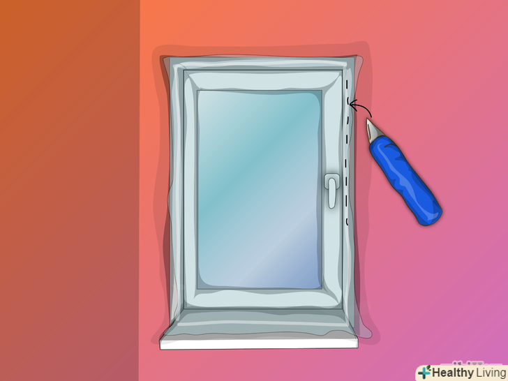 Зріжте надлишки плівки за допомогою універсального висувного ножа-різака з сегментом, що відламується. злегка натягніть кромку плівки, придавлюючи її в зоні прилипання. Намагайтеся тримати полотно ножа перпендикулярно зрізається поверхні. Відстань від місця прилипання до лінії відрізу має бути не більше сантиметра. Це дозволить уникнути забруднень і скупчення пилу. Починати видалення зайвої плівки треба зверху. Тоді плівка сама буде спадати вниз у міру різання. Будьте вкрай обережні, не робіть різких рухів, оскільки плівка може порватися в будь-який момент. Під впливом теплоти залишки плівки (смужка шириною в сантиметр) згорнеться і з часом стане ще менш помітною.- Необхідно дотримуватися всіх заходів безпеки при поводженні з ножем. Постарайтеся стояти на стійкій, що не хитається опорі, щоб ненароком не зачепити вістрям ножа плівку або не поранитися самому.