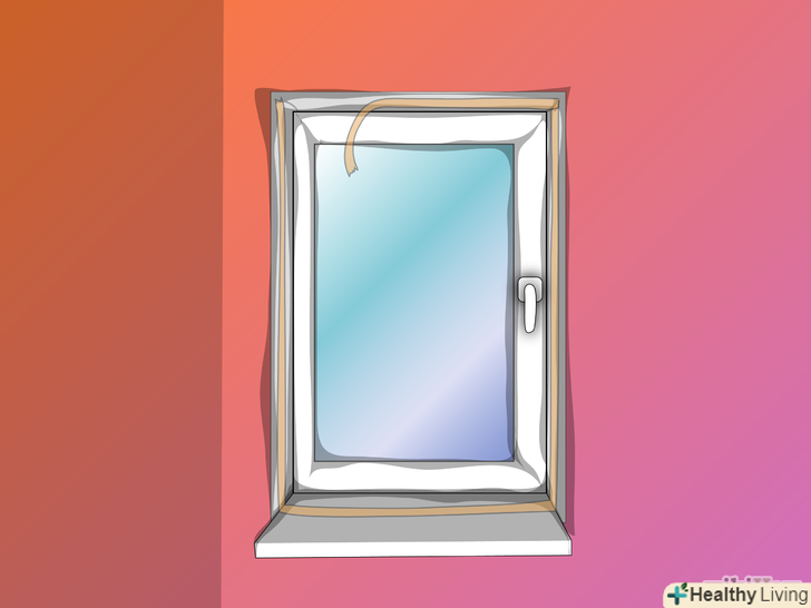 Наклейте стрічку до рами. робити це треба по периметру рами, не доходячи до молдинга і підвіконня. Залежно від форми молдинга постарайтеся розташувати липку стрічку впритул. Краї стрічки необхідно зрізати ножицями дуже акуратно. Після прикріплення стрічки до однієї сторони злегка відігніть захисну плівку на пару сантиметрів. Це необхідно для стикування перпендикулярних ділянок в єдине ціле. Намагайтеся не торкатися до поверхні рами, щоб не забруднювати її і не зменшувати адгезію (або прилипання).