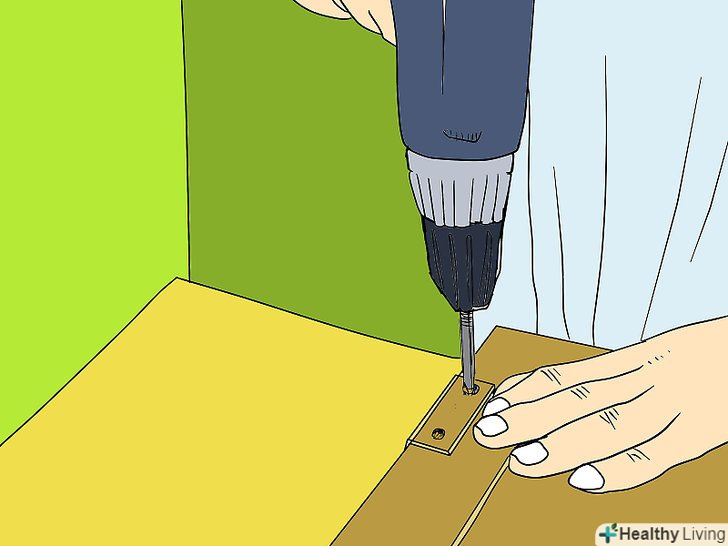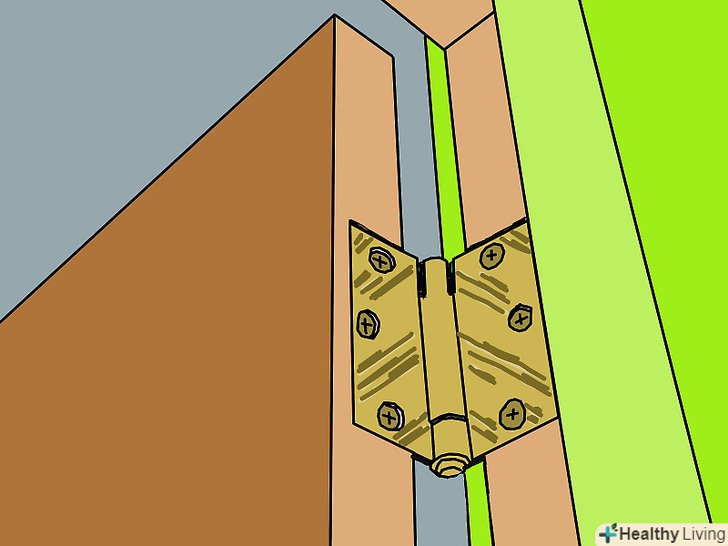 Загвинтіть петлі. використовуючи шило, зробіть позначки напрямних отворів для шурупів. Зніміть петлі і висвердлите напрямні отвори. Розмір шурупа може варіюватися, але я б рекомендував 4x40 мм для стандартної двері середньої ваги або 5x50 мм для більш важкої протипожежної двері з несучими петлями. Коли напрямні отвори просвердлені, прикрутіть петлі до дверей і переконайтеся, що петлі і головки гвинтів знаходяться на одному рівні.