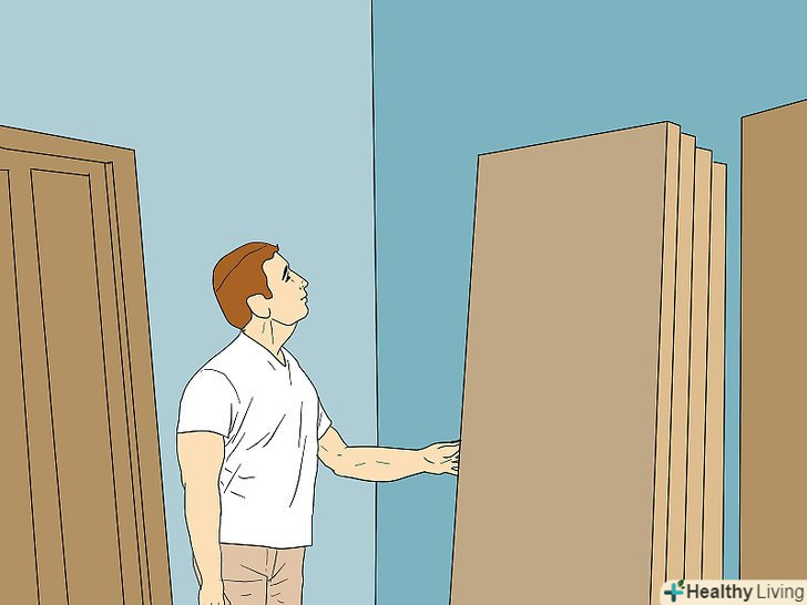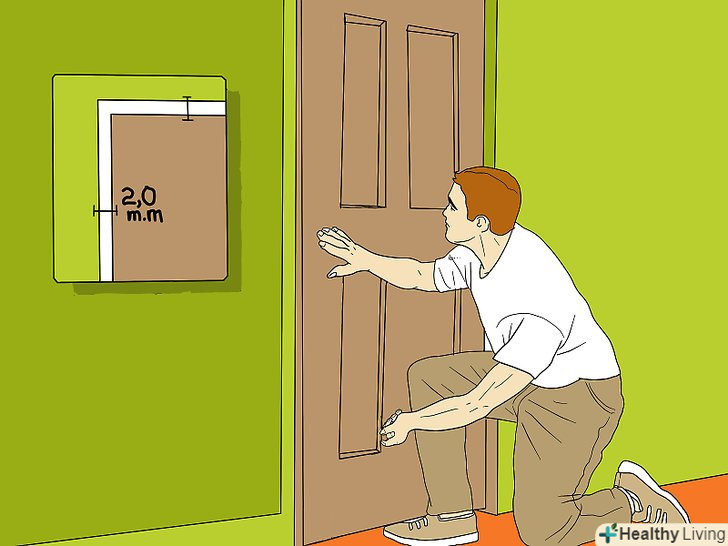Купуйте двері. вона повинна бути трохи менше, ніж готовий отвір, щоб залишався запас для закриття дверей. Можна також купити двері, яка трохи більше, так як ви будете обрізати її. Головне, залишити 2 мм зазор по двох сторонах двері і зверху і 8 мм зазор між порогом і нижньою частиною дверей.