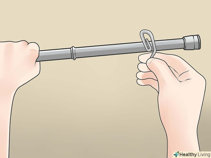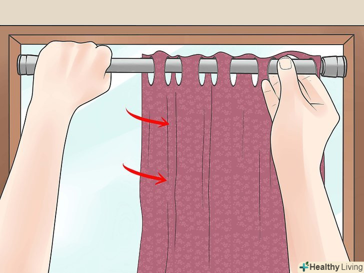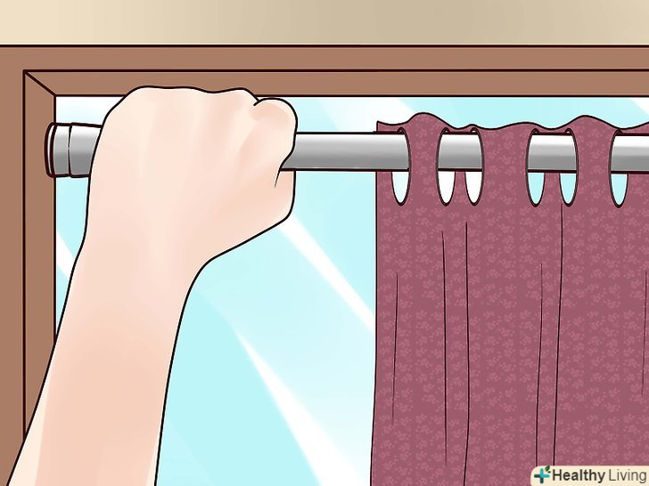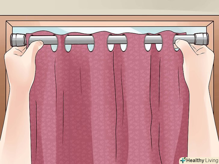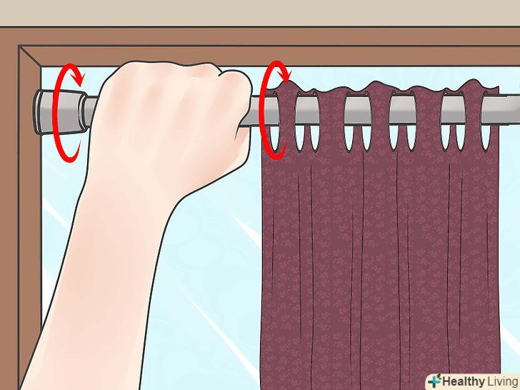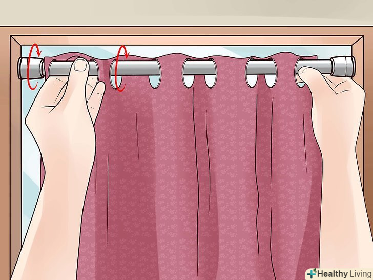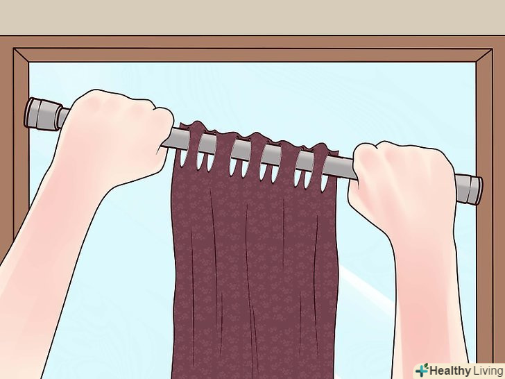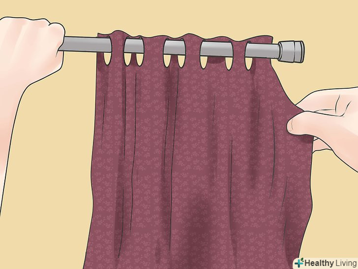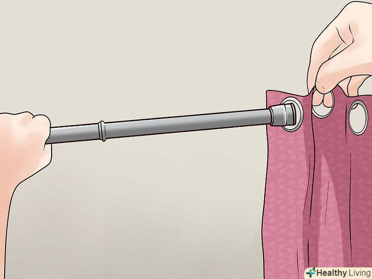 Якщо необхідно, протягніть стрижень через верхній край штори. якщо ви плануєте повісити штори за верхній край, найпростіший спосіб зробити це, протягнути відрегульований стрижень через верхню кромку штори до монтажу.- Вам необхідно мати доступ одному з кінців натяжної системи, так як другий кінець буде недоступний після монтажу.