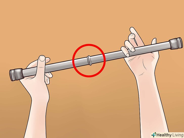 Визначте місце розташування хрестовини натяжного стрижня. на натяжному стрижні знайдіть точку, в якій з'єднуються дві секції. .- Ці дві секції є двома окремими стрижнями. Вони з'єднуються один з одним, і сильна пружина, прихована всередині блоку, дозволяє налаштовувати регулювати різну довжину.