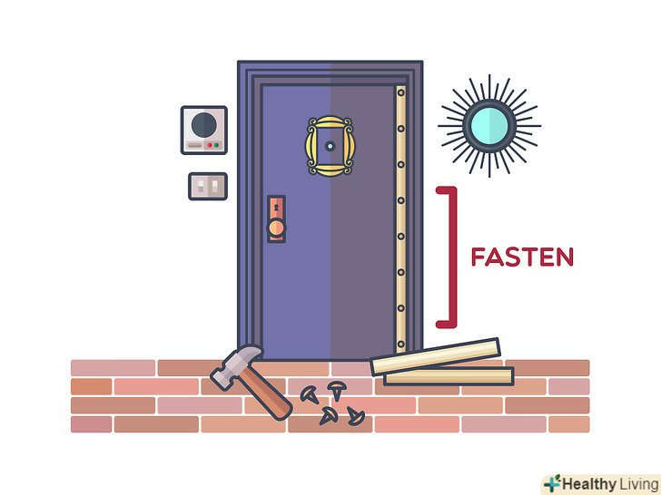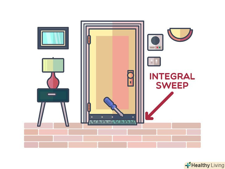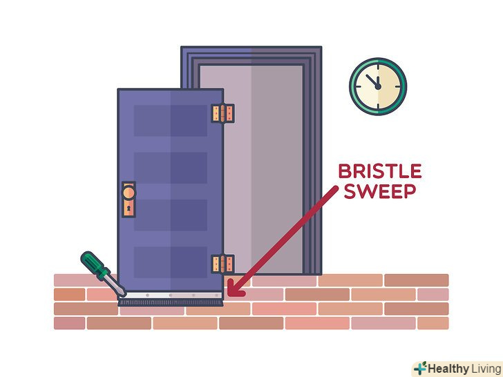 Прикріпіть накладку з щіткою до нижньої частини дверей. таку накладку можна легко встановити на більшість дверей. Деякі з подібних накладок мають невеликі колеса, які ідеально підходять для нерівних підлог. Щітка легко кріпиться шурупами до дверей за допомогою викрутки. [14]- Залежно від типу дверей, можливо, буде простіше витягнути фіксуючі штифти і зняти її з петель , перш ніж намагатися прикріпити накладку з щіткою.