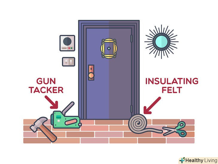 Встановіть повсть в якості ізоляції. цей спосіб досить недорогий і до одних з головних переваг можна віднести те, що рік або навіть два після установки проблем з теплоізоляцією у вас не буде. Розріжте повсть на смужки такої довжини, щоб можна було натягнути їх уздовж кожного краю двері, а потім використовуйте цвяхи або скоби, щоб закріпити. [4]- Повсть повинен бути досить товстим, щоб стискатися, коли двері закриваються, однак не повинен при цьому заважати. [5]