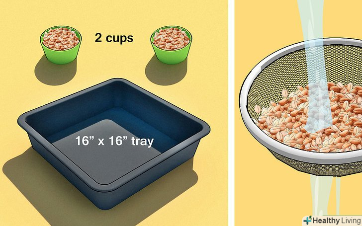 Підготуйте насіння до замочування. перш ніж приступити до замочування і пророщування, насіння необхідно відміряти і вимити.- Відміряйте достатню кількість насіння, щоб викласти тонким шаром на лоток, який ви використовуєте для вирощування трави. Для лотка 40 на 40 см вам буде потрібно близько двох склянок насіння.