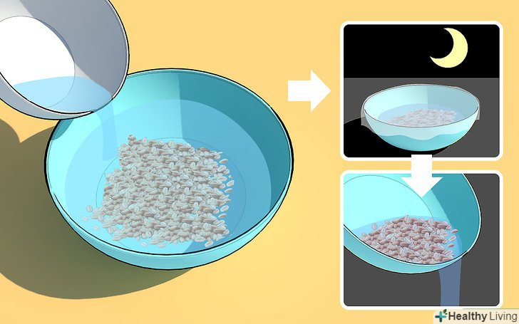 Замочіть насіння. замочування ініціює проростання. До кінця процесу, у насіння повинні прорости невеликі коріння.- Залийте насіння в мисці холодної, бажано фільтрованої, водою. Кількість води повинна перевищувати кількість насіння в три рази. Накрийте миску кришкою або поліетиленовою плівкою і поставте на стільницю на 10 годин або на ніч.