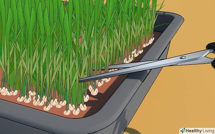 Зачекайте, поки паростки пшениці не розділяться. як тільки пагони дозрівають, з першої травинки починає рости друга. Це означає, що траву можна збирати.- Трава повинна бути висотою приблизно 15 см.