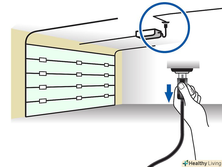 Відключіть двері від електроживлення. перш ніж змащувати двері, переконайтеся, що електроживлення відключено. Закривши двері, вимкніть її від джерела живлення. [2]- Якщо штепсель до управління воріт гаража знаходиться у важкодоступному місці або дроти підключені безпосередньо без перехідника, тоді вимкніть живлення на електрощиті.