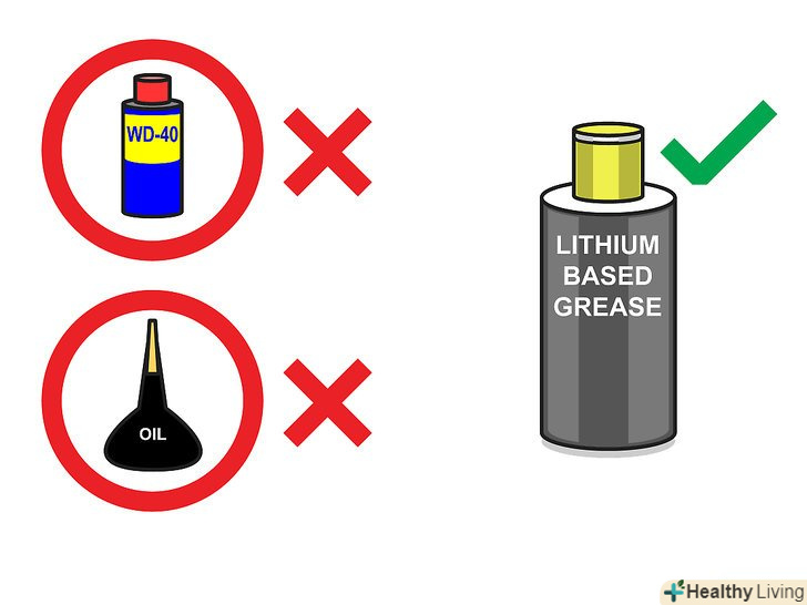 Купуйте мастило на основі літію або звичайну мастило для гаражних воріт. для гаражних воріт не зовсім підходять популярні звичайні знежирюючі засоби, наприклад WD-40. Замість цього купуйте літієву мастило в будівельному магазині або в Інтернеті. Також продаються спеціальні мастила, які розроблені для гаражних воріт. Не користуйтеся маслом. [5]- Мастило для гаражних воріт зазвичай поставляється в аерозольній упаковці або у вигляді спрею.