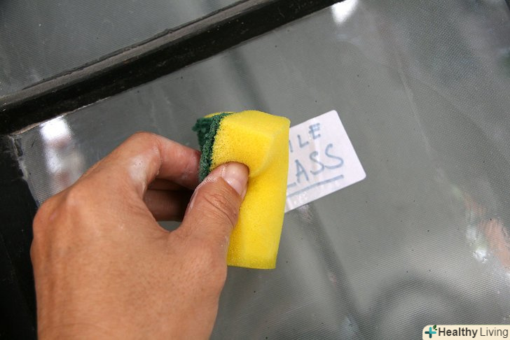 Занурте губку у відро, трохи вичавіть і протріть скло.