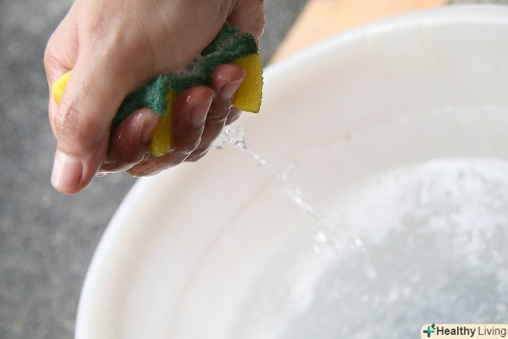 Занурте чисту губку у відро з водою для полоскання і вичавіть надлишки води.