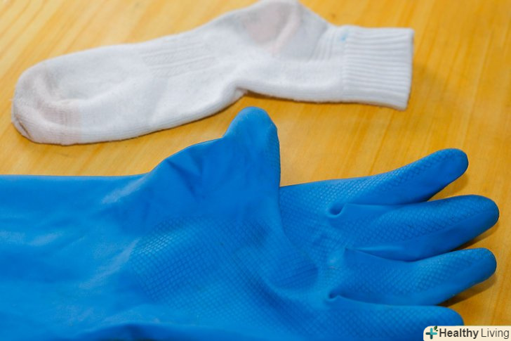 Використовуйте старий носок або рукавичку. якщо ви шукаєте метод, який дозволить вам очистити важкодоступні місця, знайдіть старий носок або рукавичку. Одягніть рукавичку або носок на руку. Розпиліть засіб для чищення на ділянку жалюзі і проведіть по ньому рукою, щоб прибрати пил. Повторіть так з кожною платівкою.- Спеціальні засоби для чищення поверхонь в цілому, безпечні для використання, але якщо ви віддаєте перевагу натуральний засіб, використовуйте розчин води і оцту.