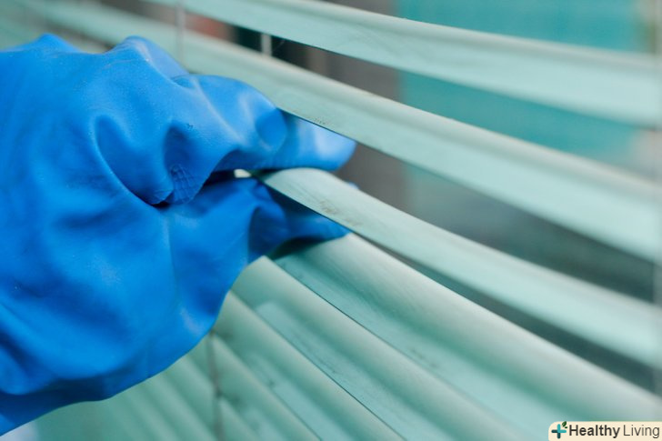 - Для ще більш швидкого чищення, відкрийте жалюзі і візьміть рукавички або носок, великим і вказівним пальцями стисніть пластинку і проведіть по ній, збираючи пил з двох її сторін. Повторіть ці дії для кожної пластинки.