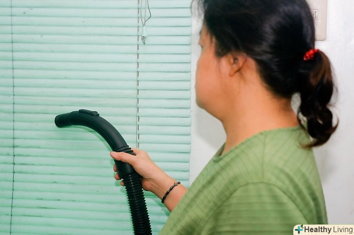 Очистіть жалюзі пилососом. у більшості випадків чищення пилососом достатньо, щоб прибрати весь пил. Також, це може бути хорошим підготовчим способом для дуже брудних жалюзі, для наступного етапу очищення. Почніть з закритих жалюзі.- Приєднайте шланг до пилососа.