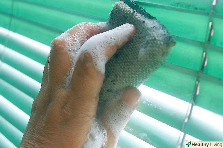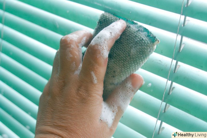 - Мильна вода безпечна для використання на більшості жалюзі і вкрай необхідна, якщо на пластинах є затверділий пил. Налийте у відро теплу мильну воду, піднесіть його до вікна, де висять ваші жалюзі, і використовуйте губку для очищення жалюзі. Умочуйте губку в мильній воді і віджимайте її в міру необхідності.