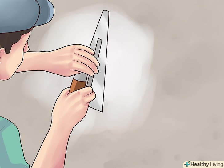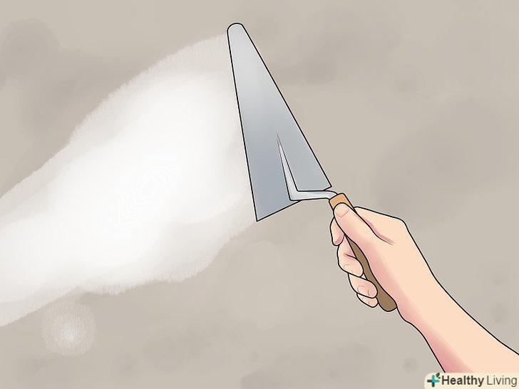 Нанесіть перший шар. кельмою нанесіть базовий шар штукатурки. Наносите її короткими рухами якомога більш тонким шаром. Рухи можуть бути довільними або слідувати певній схемі, тільки не дійте постійно в одному напрямку.- Тримайте кельму під кутом 15-30 градусів і частіше протирайте її чистою сухою ганчіркою, щоб засохлі шматочки штукатурки не залишали слідів на стіні. [11]