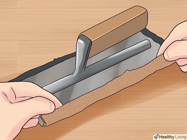 Підготуйте кельму. Візьміть наждачний папір 12-Н (P-100) і з її допомогою закруглити куточки гнучкої сталевої кельми. Сліди від її країв при нанесенні штукатурки буде менш помітні. [10]